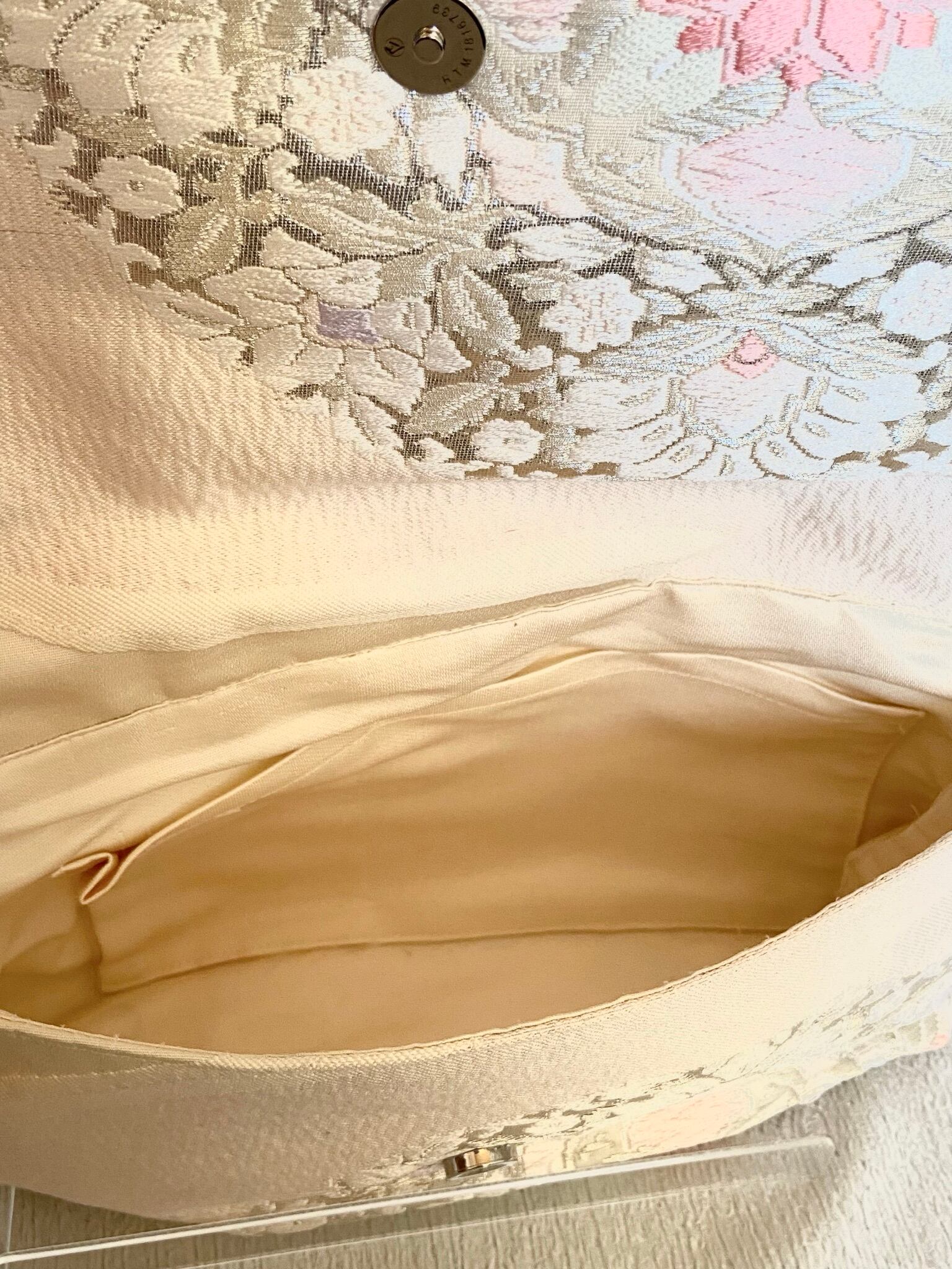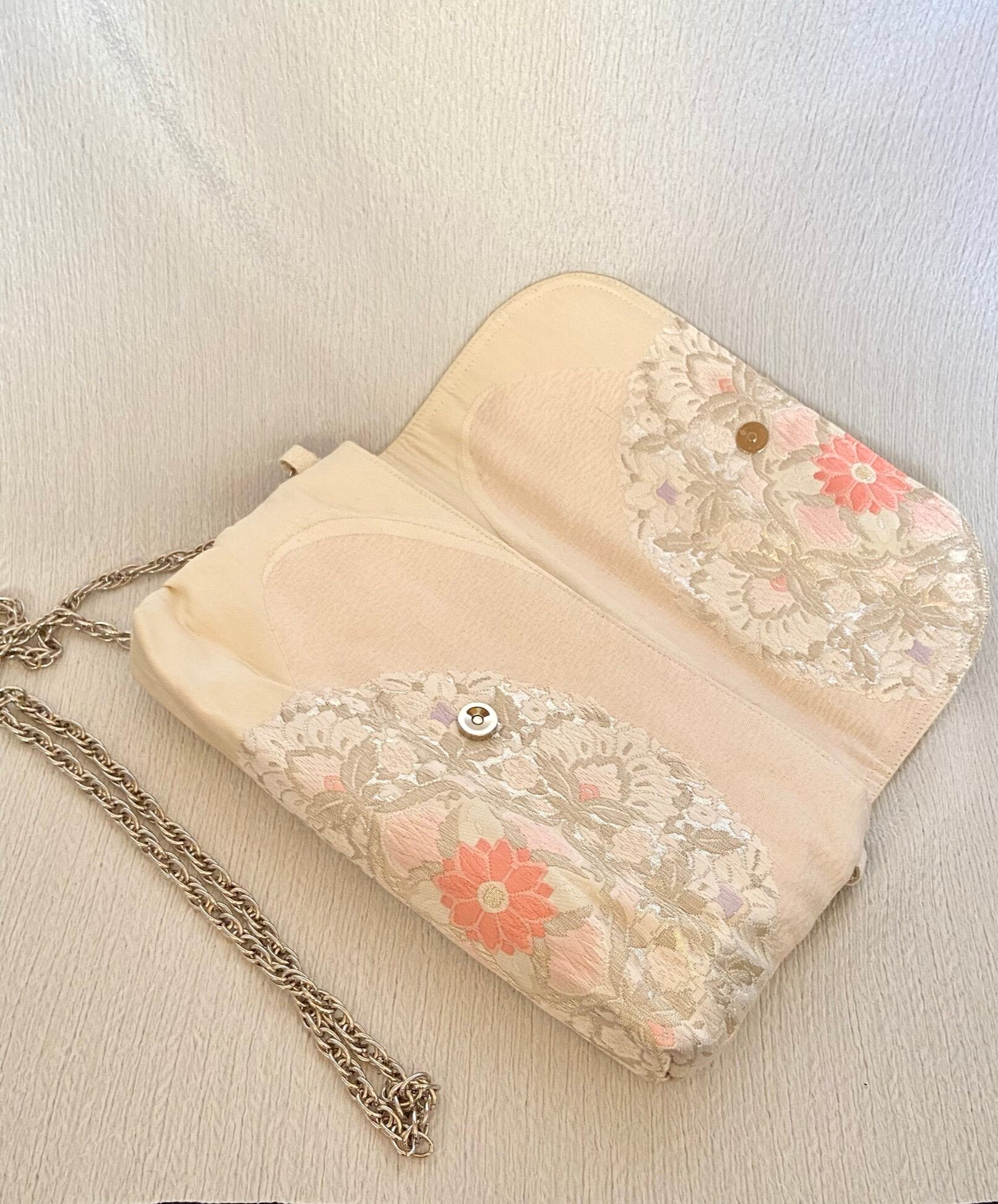 帯リメイククラッチバッグ 白ピンク花